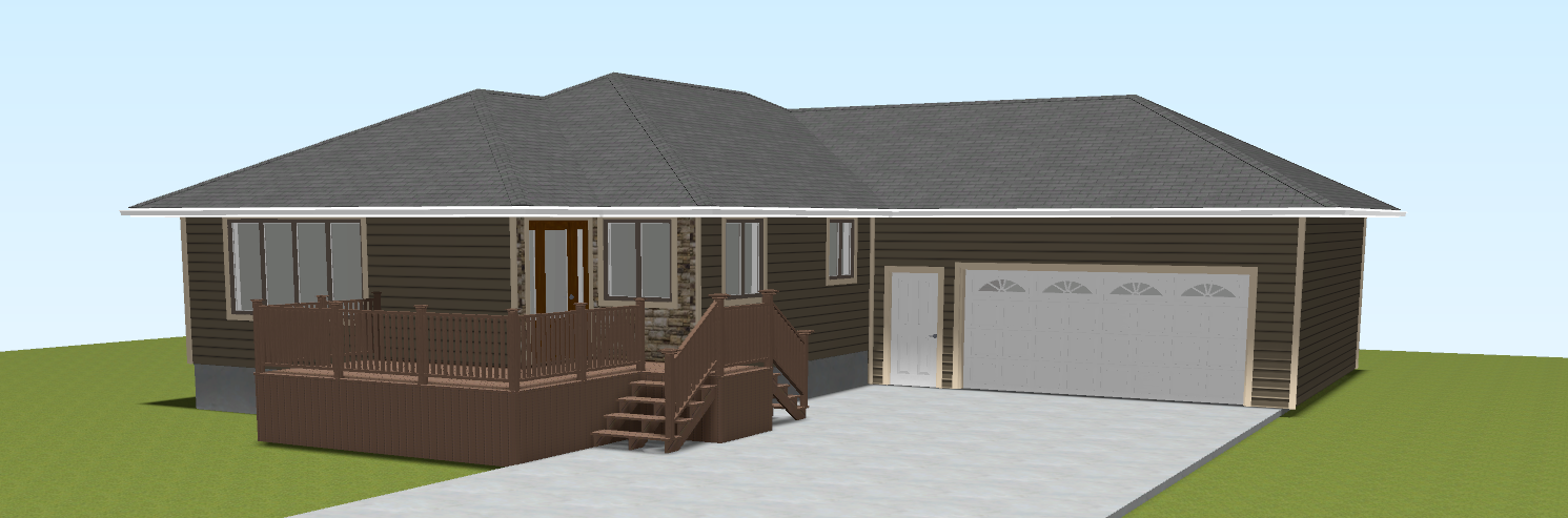black shingles sandtone trim dark brown windows white soffit white garage door white gutters