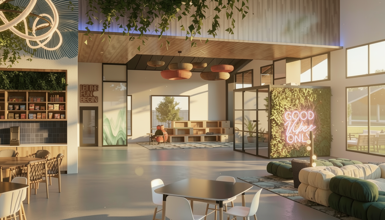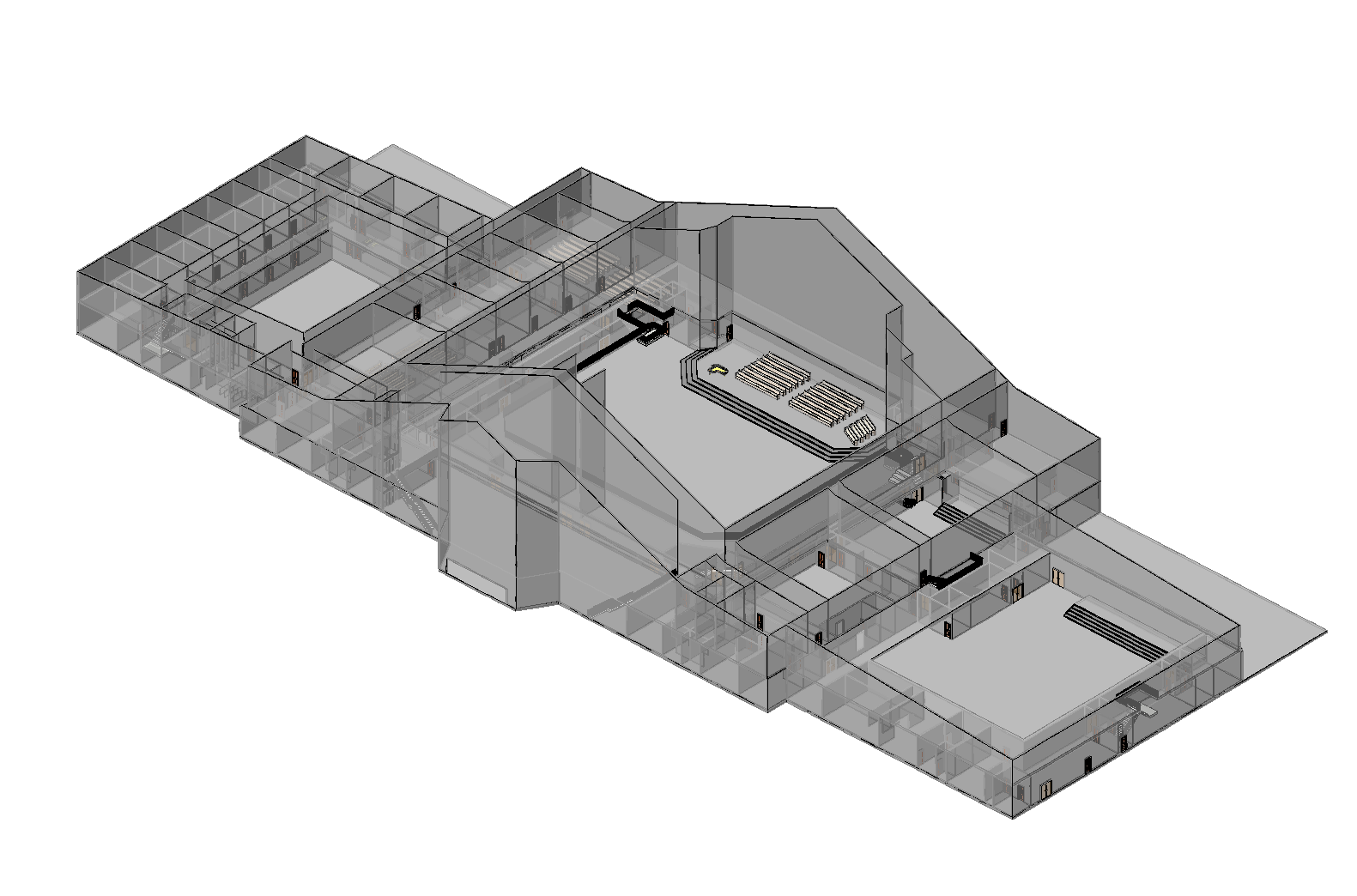 generate a front exterior architectural elevation only using the provided floor plan image as the primary reference for massing and spatial logic design a modern church building with clear separation between lobby sanctuary and side wings accurately reflecting the floor plan layout floor plan driven spatial logic critical the central lobby is a shallow full width volume located at the front of the building the sanctuary is a large deep volume directly behind the lobby the sanctuary must read as a solid opaque mass in elevation glazing occurs only at the front lobby volume and does not continue through the sanctuary the elevation should clearly express a transparent lobby layer in front of a solid sanctuary layer composition clearly expressed central entry lobby along the front fa ade sanctuary mass rises behind the lobby and appears heavier and more solid two horizontal wings extend left and right of the central mass education wing on one side fellowship banquet hall with kitchen on the other side wings remain lower and longer to reinforce the central hierarchy lobby glazing multi story glass curtain wall across the front face of the lobby only glazing reads as a front atrium bar not a through building condition side returns of glazing only where the lobby volume wraps slightly clear termination of glass before the sanctuary mass begins vehicular porte coch re drop off required provide a true drive through porte coch re aligned with the central lobby entrance vehicles can enter stop drop off and continue through minimum clear height 15 16 feet minimum clear drive aisle width 26 30 feet canopy depth sized for multiple vehicles to queue beneath structure expressed with bold modern beams or frames integrated directly with the lobby architecture reads as civic institutional not hotel or hospitality architectural character contemporary church architecture flat roofs on all volumes clean rectilinear forms strong horizontal datum lines with vertical emphasis at the lobby materials clear high performance glass at lobby architectural concrete stone or large format panel systems at sanctuary and wings dark metal accents warm interior lighting visible within the lobby only overall intent open welcoming and dignified clearly communicates arrival gathering and worship modern civic presence without commercial cues rendering style straight on front elevation only daytime lighting clean architectural rendering no people no signage no branding minimal landscaping