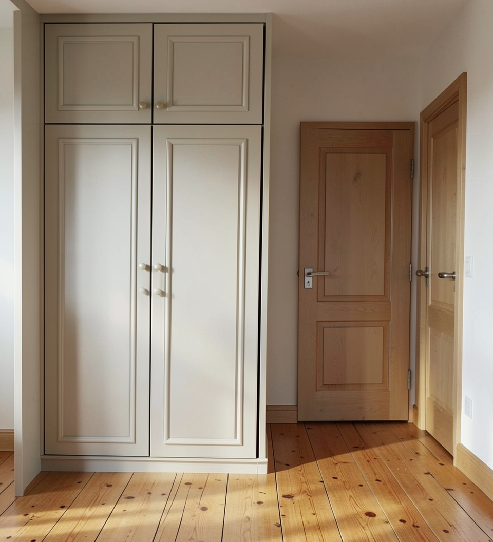 dont add any door handles or door knobs dont add a background add pine flooring place the wardrobe up against the wall the wardrobe goes up to the ceiling