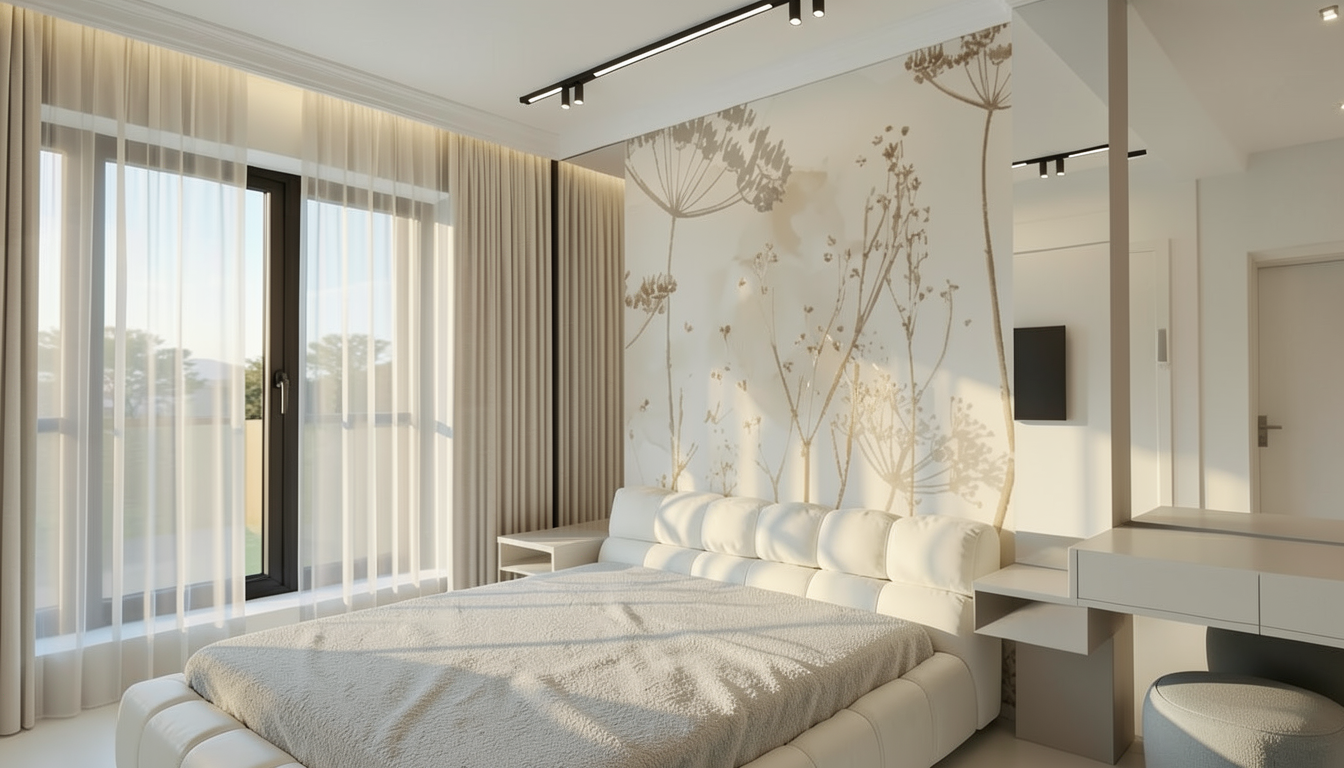 a ade cortinas blancas para cubrir un poco la puerta de la izquierda que da a una terraza elimina la cortina que est en la pared del frente pero manten las otras a ade luz perminetral en el techo por el exterior de la moldura