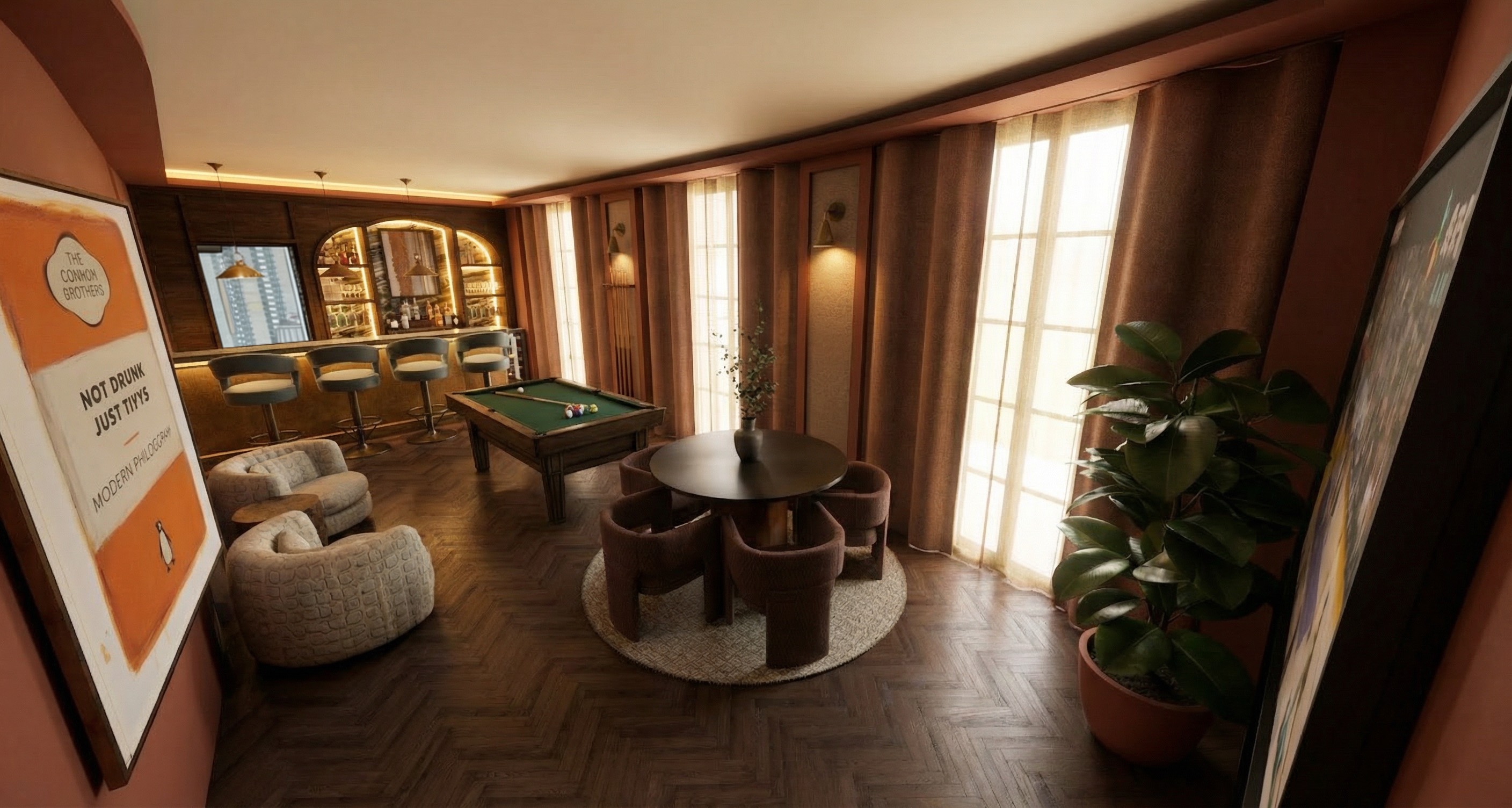 change curtains to be dark bronze velvet