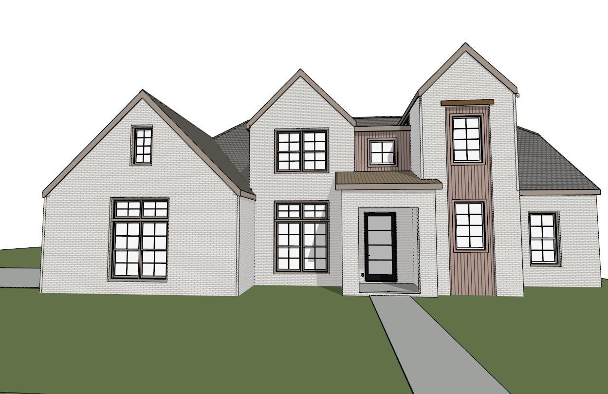 create a realistic scene make the brick a light white make the vertical siding light wood color
