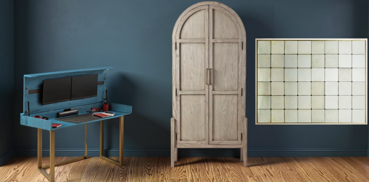 add picture frame molding change floors to white oak change the island to a waterfall make the windows black with white trim