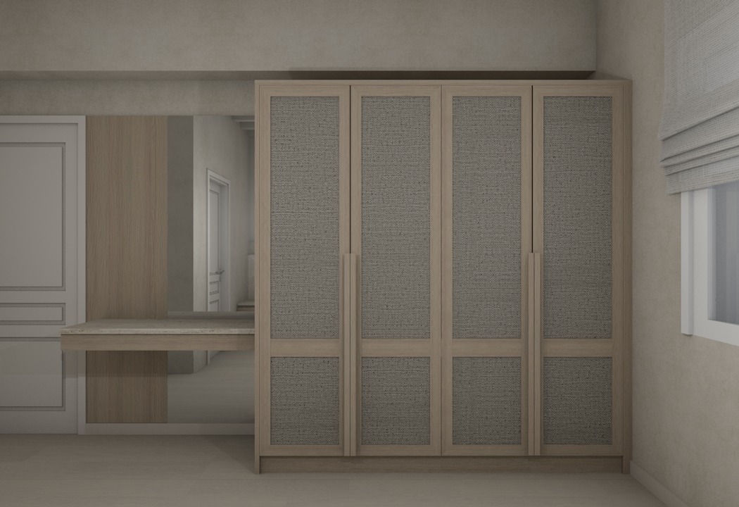 ultra realistic render high resolution professional interior design photography style keep the design exactly as it is the walls are light beige cemento effect keep exatly the same texture the lighting should be natural but neutral allowing all materials to appear stainles steil knob on the door