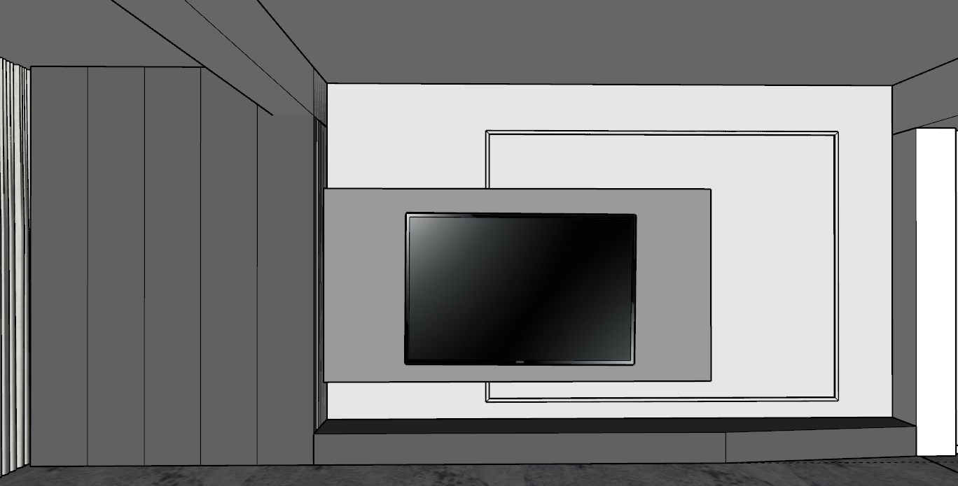 interior shot create an elegant living room tv wall design in modern manor but with elegant elements on the cabinet under the tv there in an open modern fireplace add textures and lamps and ambiental lights