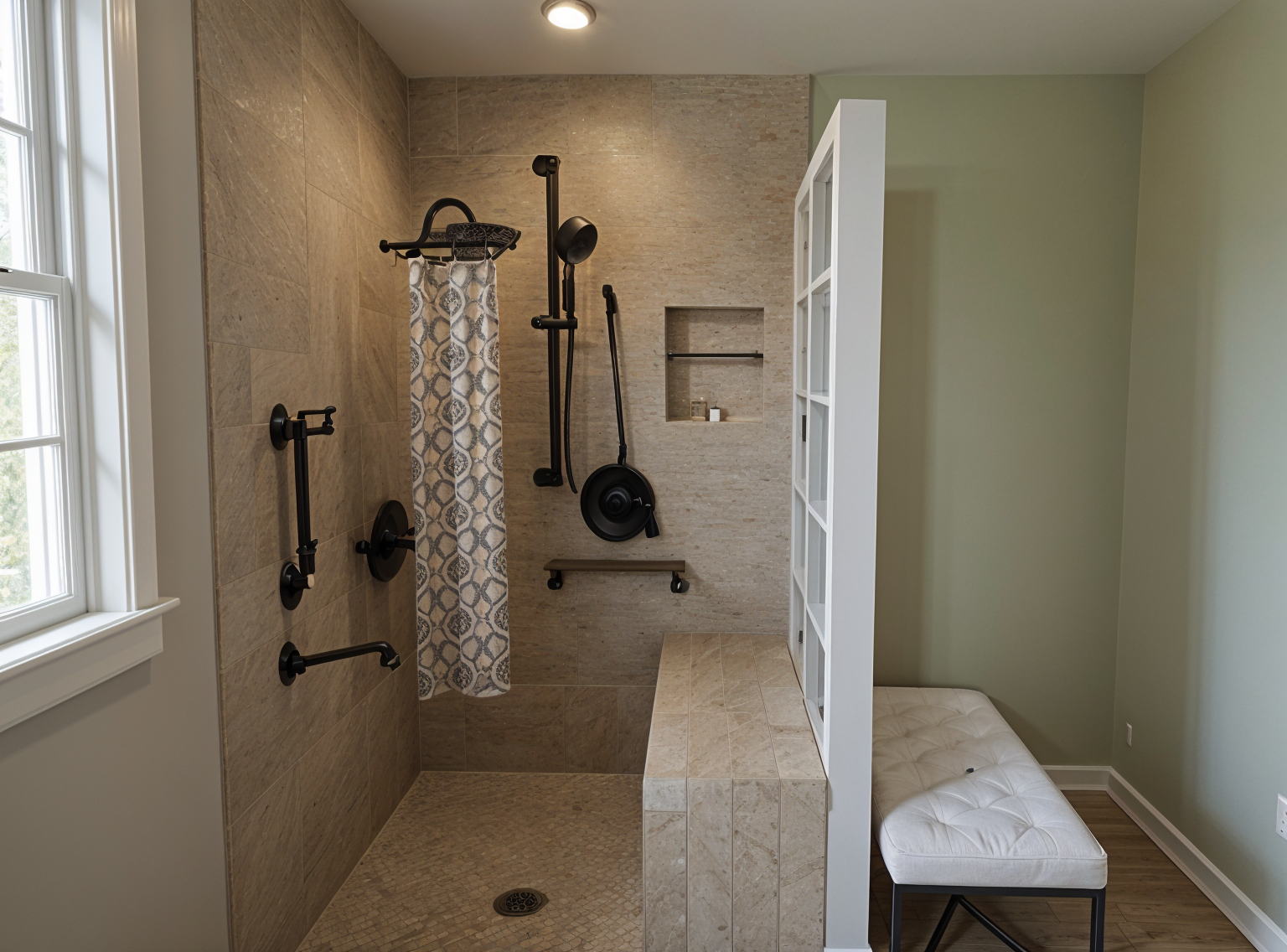 photorealistic rendering of suburban homes on a gently sloping hill during a bright sunny day the houses feature french gray stucco walls grey vertical siding on the second floors stone siding at the base chamfered bay windows and gray shingle roofs reflecting warm inviting tones the grass on the hill is lush and vibrant green the sky is a clear azure blue with scattered fluffy white clouds the background is a series of rolling hills with trees creating a serene and peaceful atmosphere the sun casts soft natural shadows enhancing the overall warmth and tranquility of the scene there is a single pedestrian walking on the sidewalk architecture