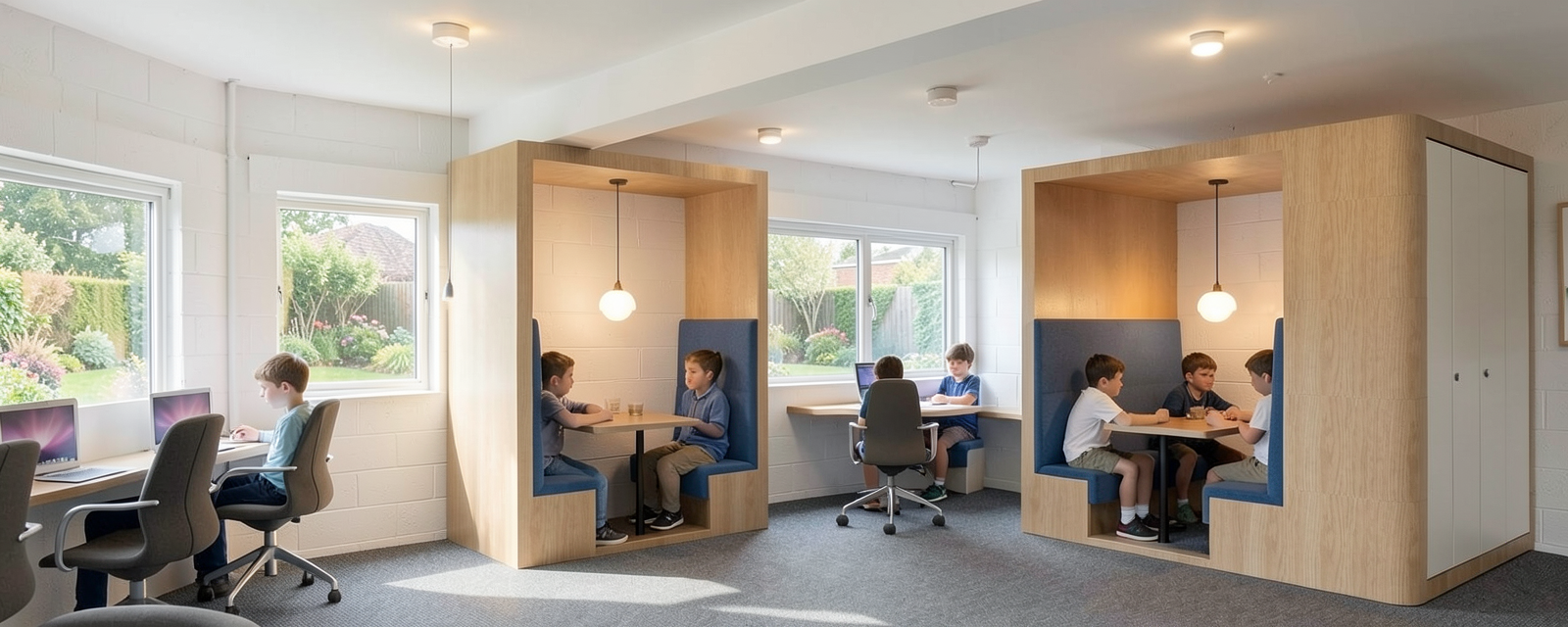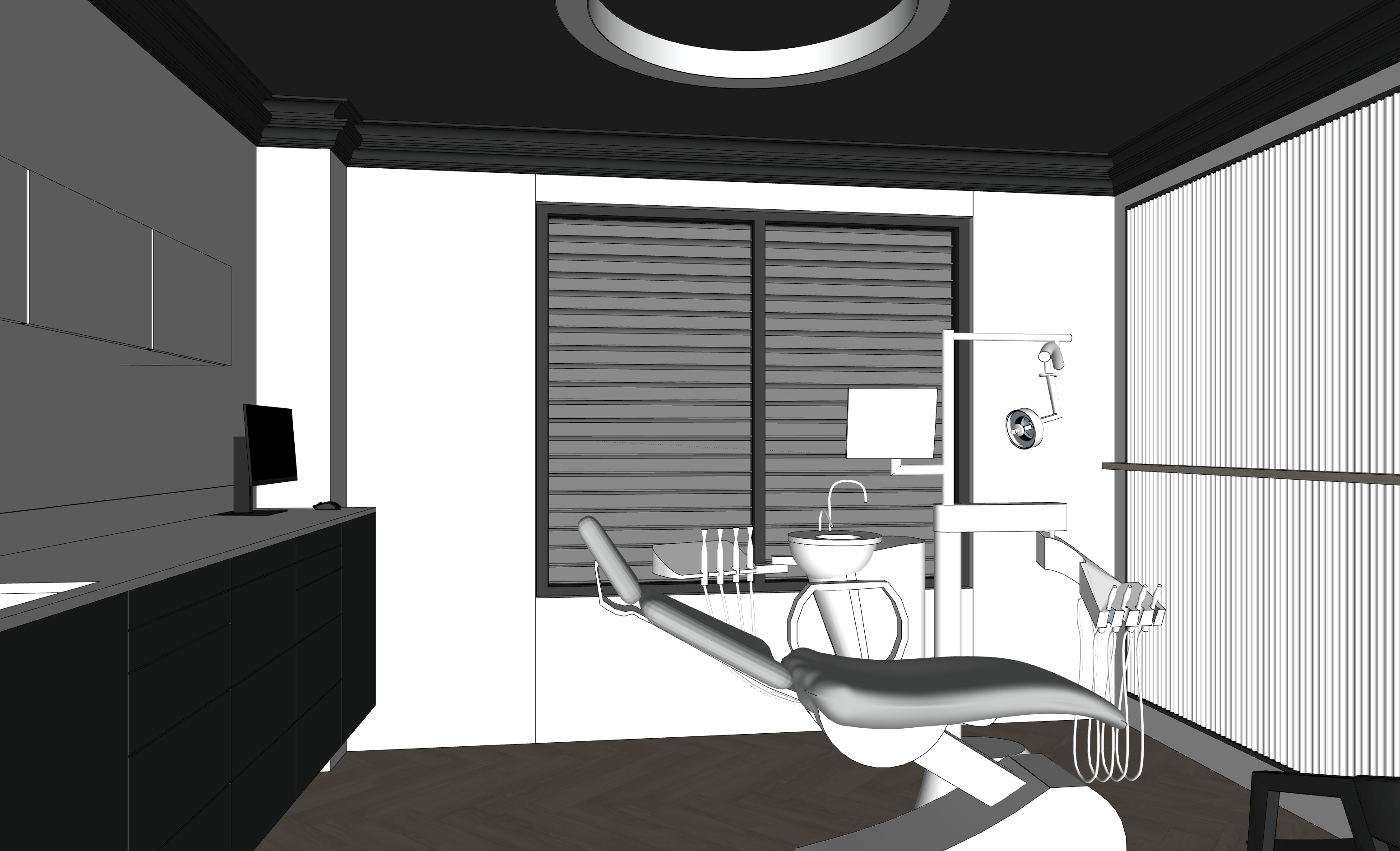 transform this sketchup screenshot into a professional photorealistic architectural visualization do not change the design architecture proportions layout perspective or composition in any way maintain the exact geometry materials and colors as shown in the original image do not reinterpret or redesign anything create a realistic lighting setup with a bright naturally illuminated atmosphere include soft natural daylight subtle sunlight direction and ambient bounce light combined with realistic artificial lighting from existing lamps or light sources in the scene all light sources should emit believable light and cast accurate shadows ensure physically accurate materials true to life textures correct reflections and realistic surface properties the final result must be sharp high resolution highly detailed and photorealistic preserve the original camera angle and framing exactly no stylistic reinterpretation only realistic enhancement