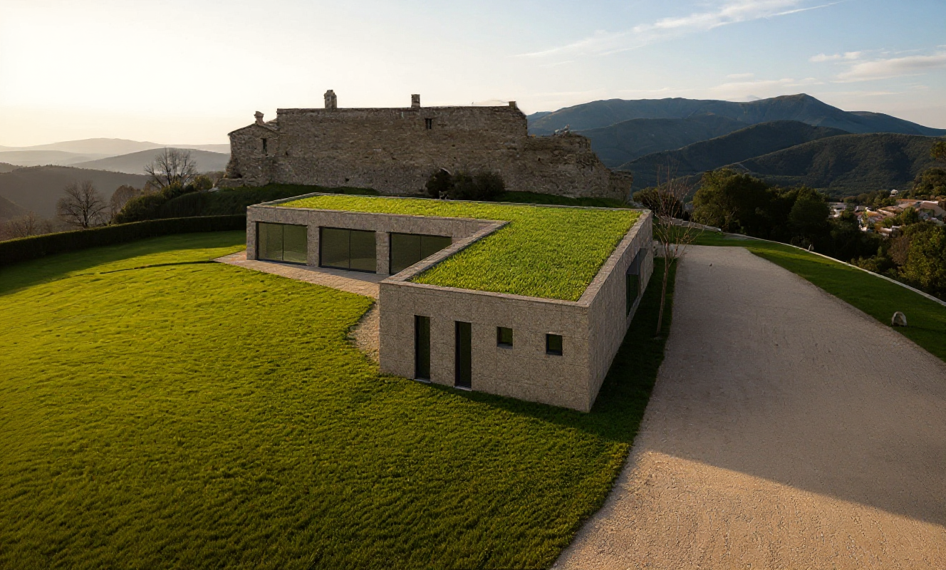 puoi rendere l illuminazione pi realistica mantenendo il marmo travertino spaccato delle pareti la copertura con il prato soprastante e le vetrate leggermente specchiate