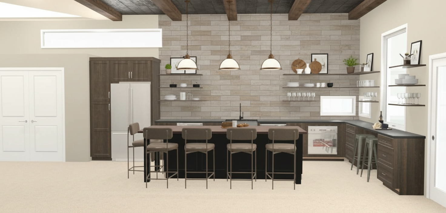 add more natural light to focus in on the crown molding i need to keep the view on the uploaded image make it look like a dark stained wood