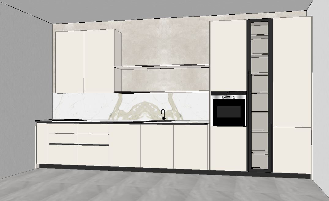dont change the design the colors or the texture just make it more realistic more soft vibes add a soft led strip under the upper cabinets