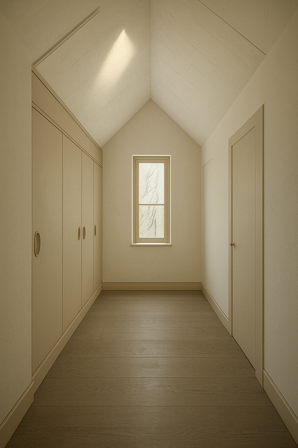 warm white kitchen with a light white oak range hood marble countertops on a sunny day
