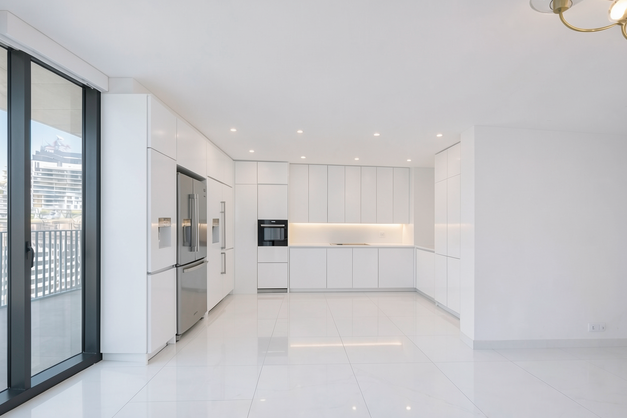 quitar la nevera y en su lugar poner un mueble alto