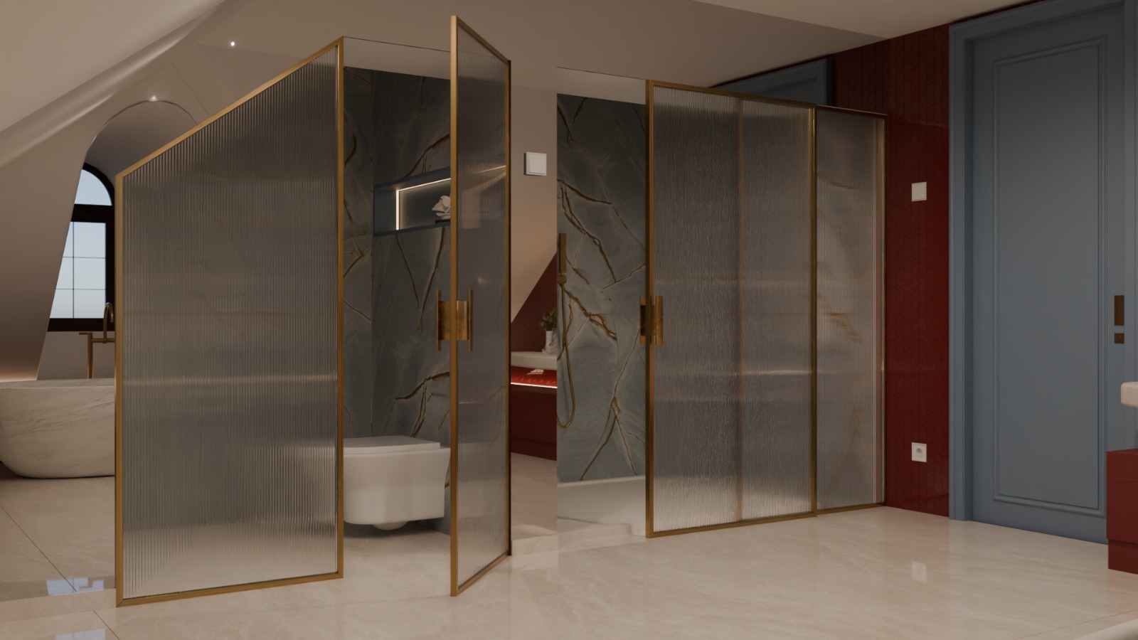 change the stone on the wall to red instead of blue but keep the same design of stone and overall contrast of the tiles not plain red