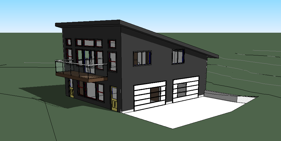 add natural lighting make look realistic add surrounding trees and nice minimal landscaping make the driveway go out of frame on the right