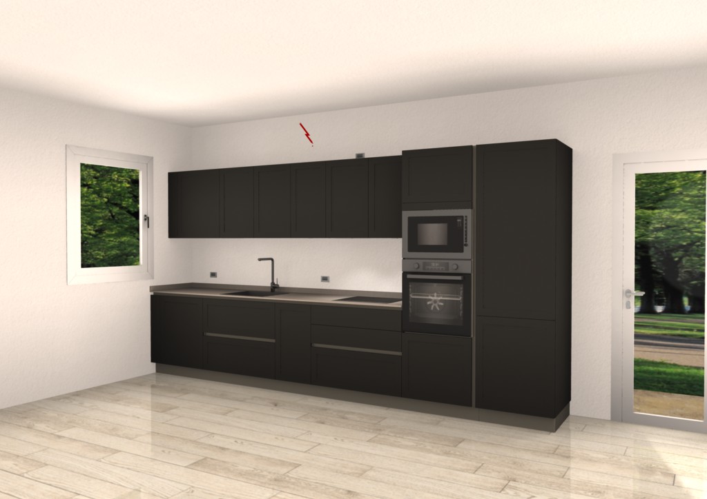 pensili effetto cemento spatolato chiaro pavimento legno molto chiaro quasi bianco top cucina ceramica grigio