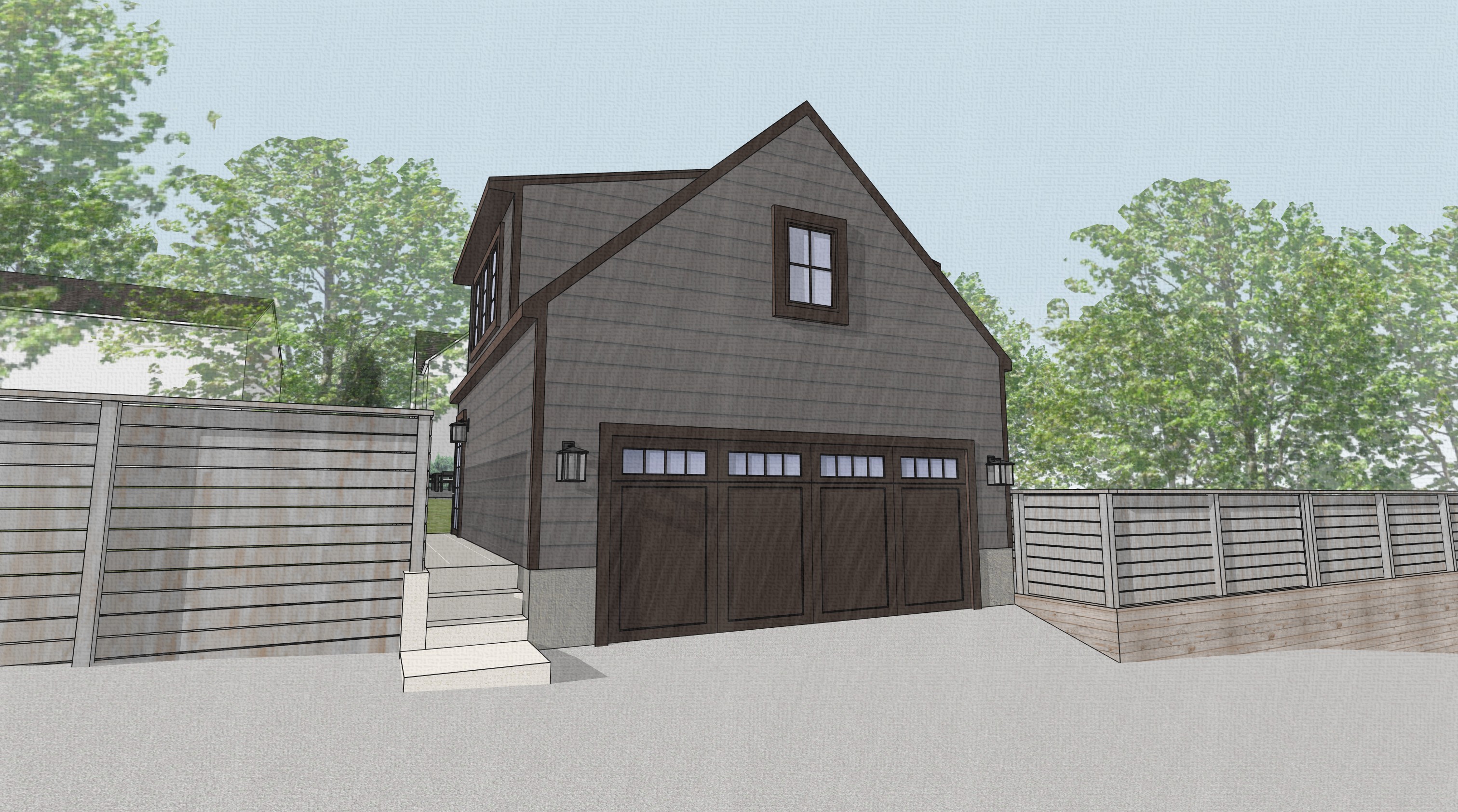 realistic greige siding with brown trim concrete foundation light wooden fence sunny day