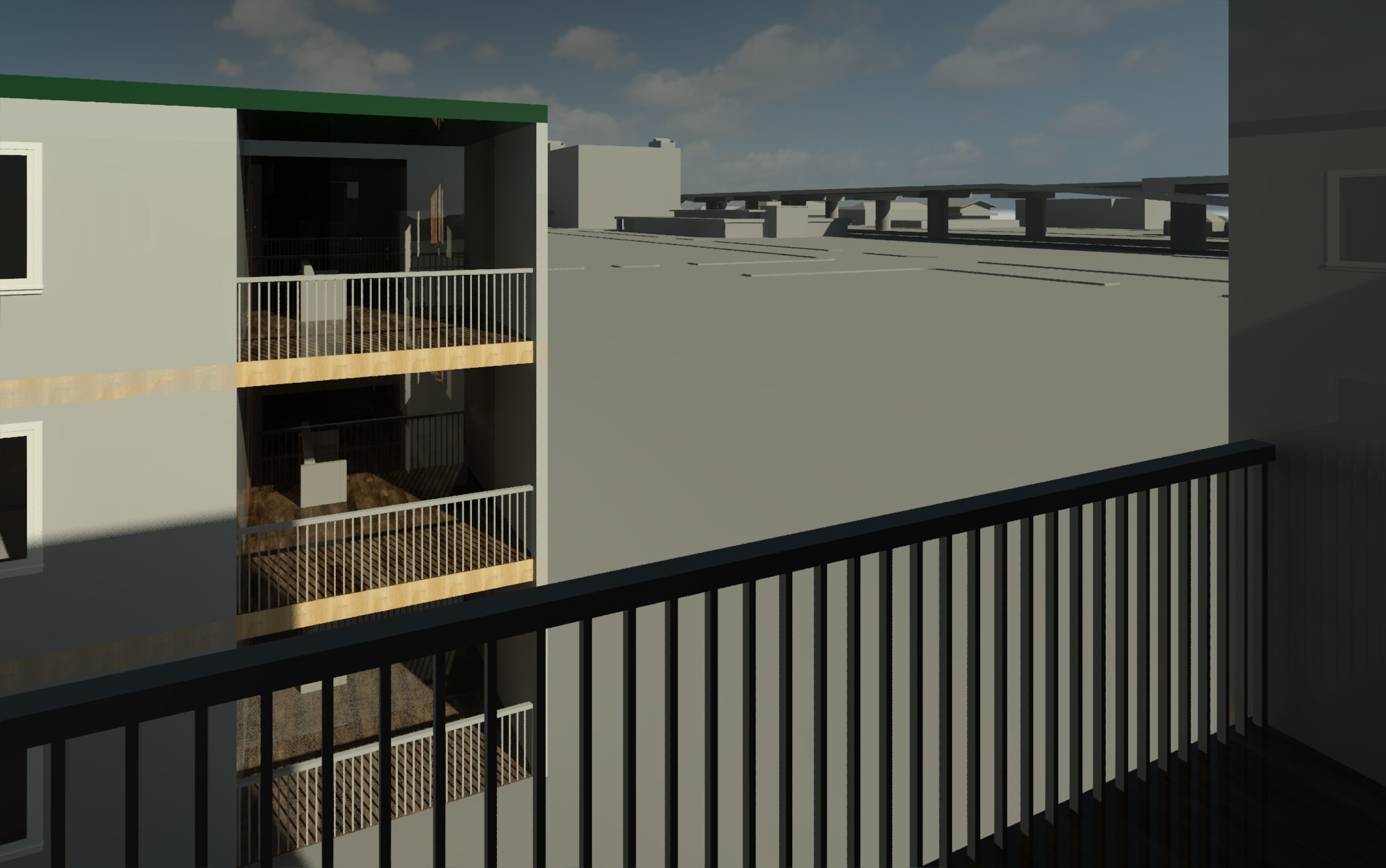 walls are made of clt plywood add vegetation and people add sky on background architecture