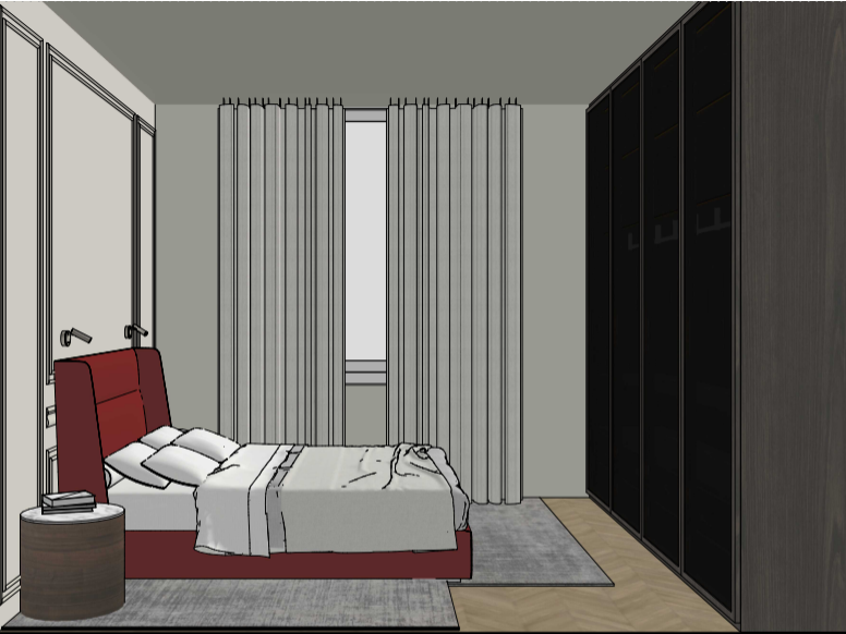 interior shot a modern minimalist entryway with a warm and inviting atmosphere the walls are a soft cream color and the lighting is a gentle warm yellow glow that highlights the clean lines of the space the door is a rich dark wood enhancing the elegance of the room the sleek bench is a deep brown with a single plush gray cushion above the bench a tall vertical panel in charcoal gray is subtly illuminated on the right dark wood cabinets with soft integrated lighting add a touch of sophistication the floor is covered with a textured beige carpet complementing the overall modern and cozy ambiance