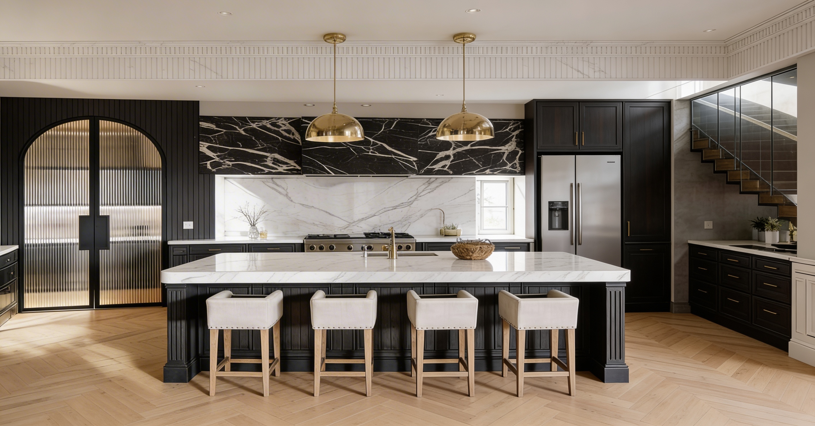 change the cabinet hardware to half circle brass handles