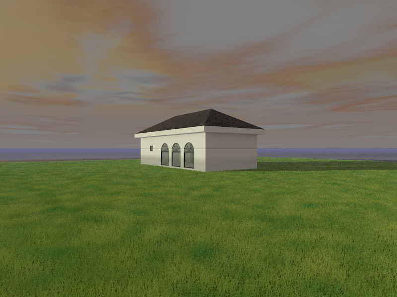 modern mediterranean single story building with cream stucco walls and dark tiled roof arched windows and a central arched entrance with black metal frames soft neutral colors beige ivory with minimal landscaping and clean paved ground warm natural light golden hour soft shadows calm and elegant atmosphere keep original nodes realistic