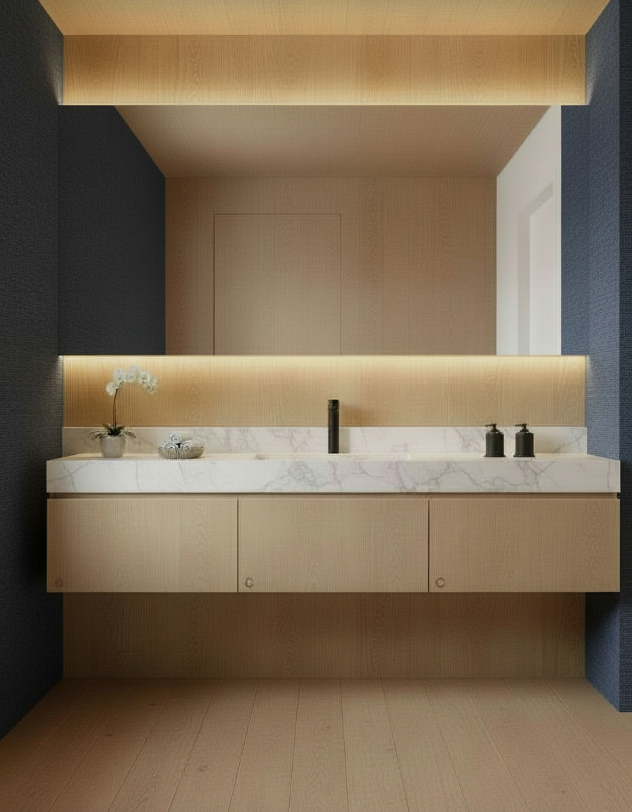 put the two white side walls with a tapestry with a very small texture in dark blue color leave the carpentry as it is do not change anything else