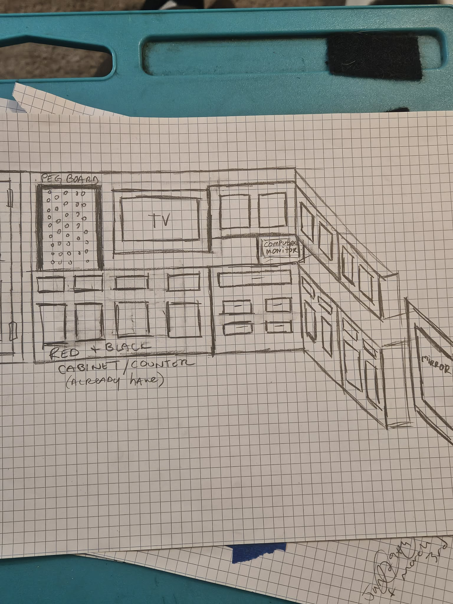 i am redoing the corner of my tattoo studio ignore the big wooden table i want to build cabinets for the corner help me see what my ideas would look like