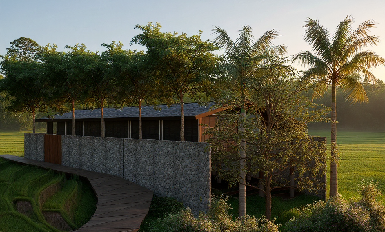 photorealistic image of this green courtyard