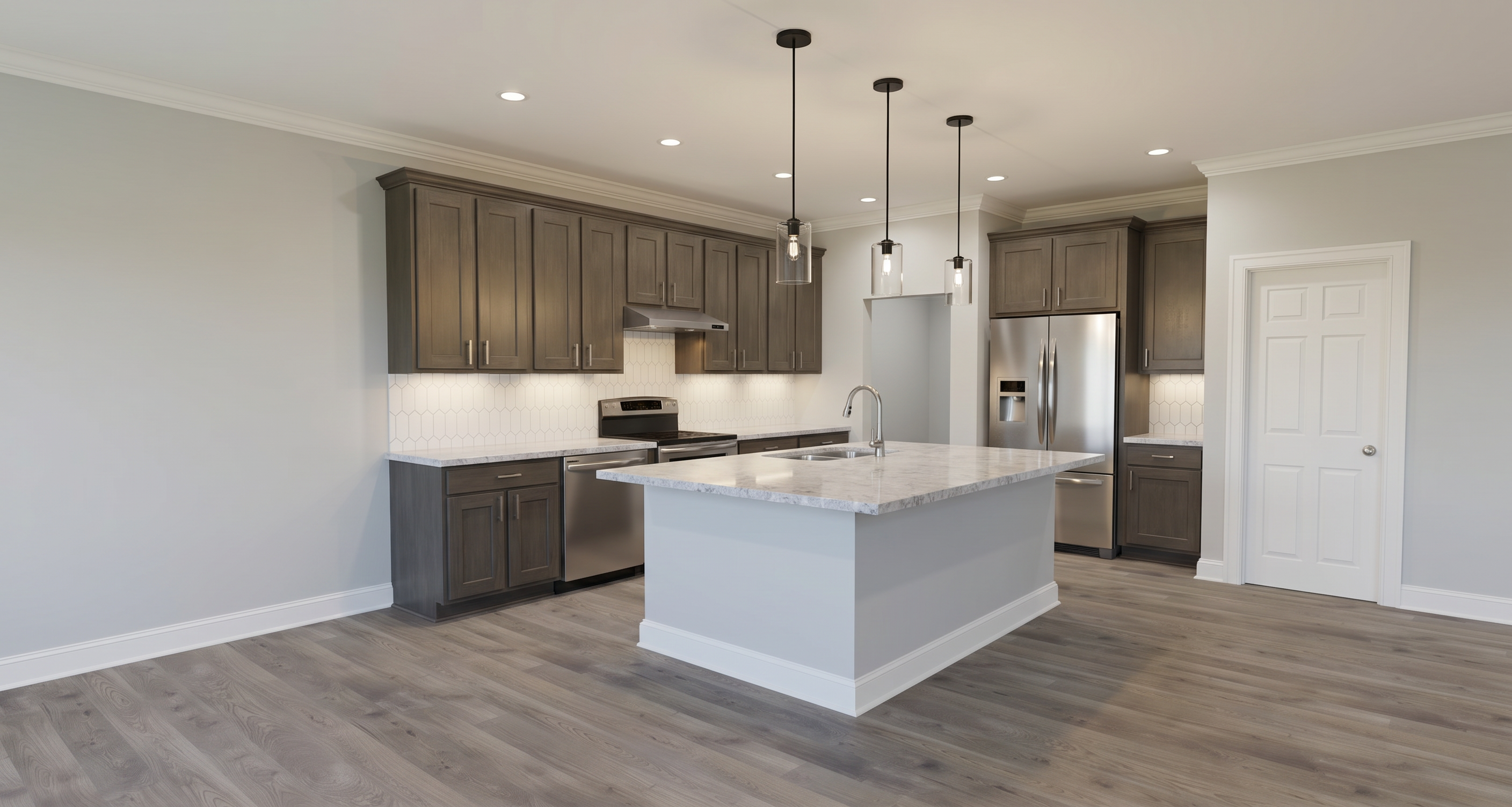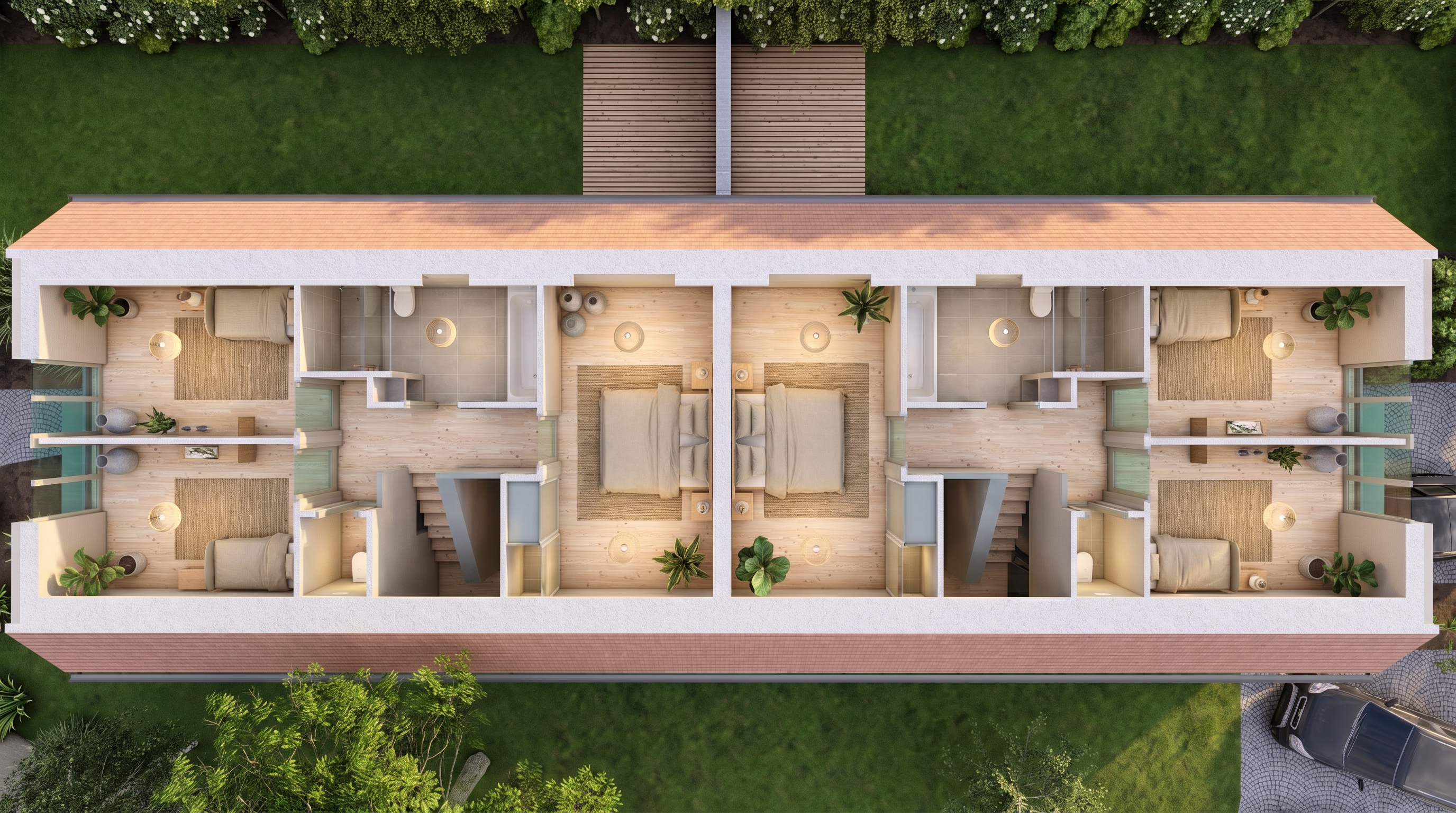 add a vertical light bar between front window and front door add manucured lawn remove light bar from left side of front door add a few shrubs under front window remove light bar from centre of front door