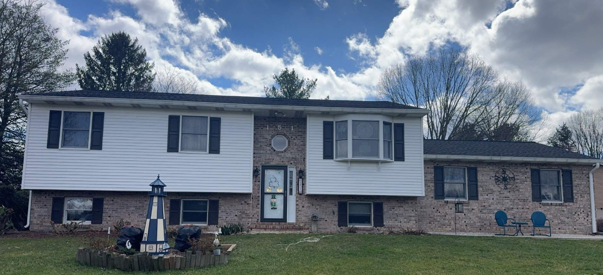make the siding grey and the downspouts black