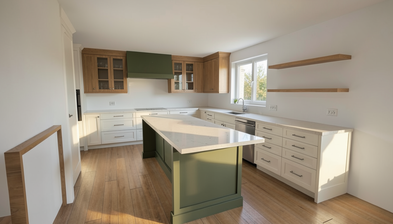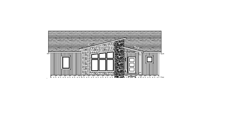 make as photorealistic as possible while keeping textures the same as selection professional landscaping in a lightly wooded scene with good lighting match materials to plan and remove any text dark grey siding black trim windows black porch post and trim front door to match the plan