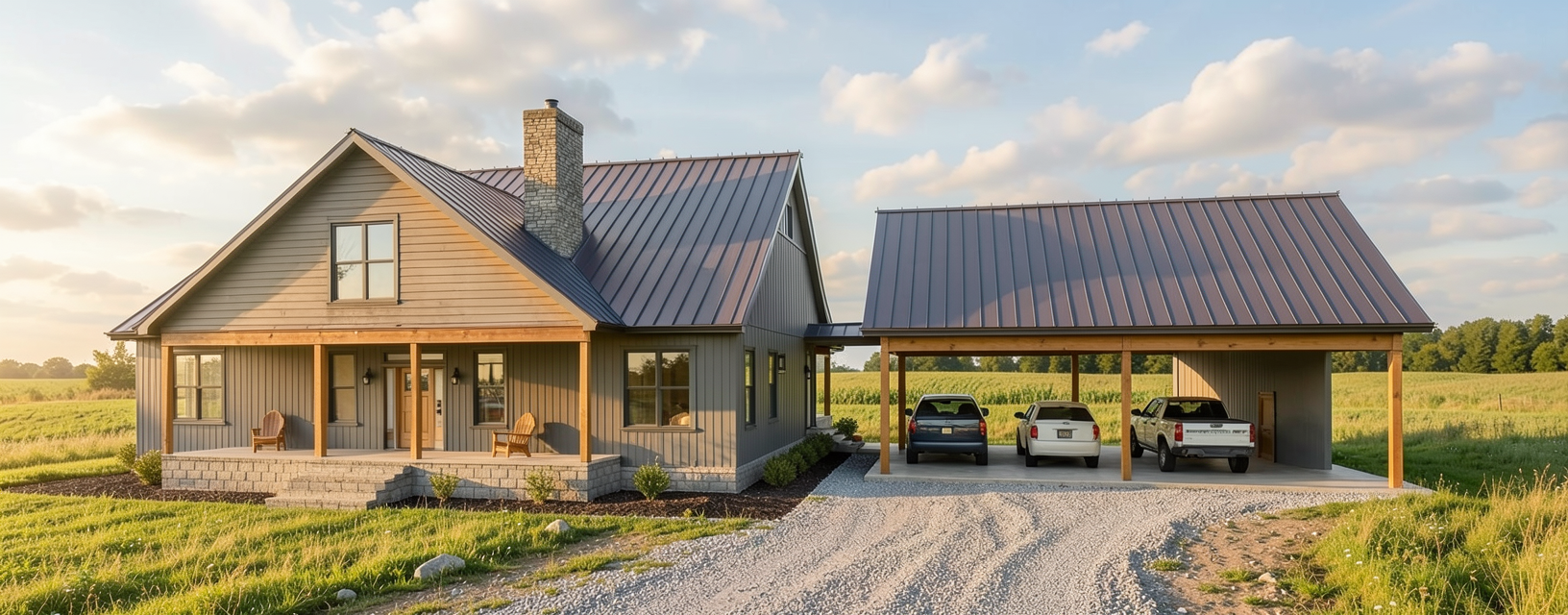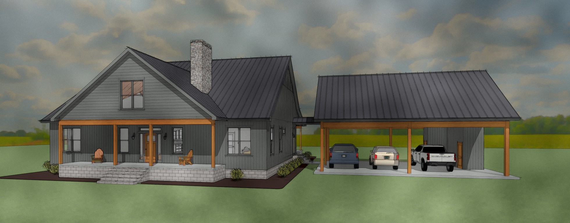 photorealistic country background add a gravel driveway leading up to the carport cut the grass