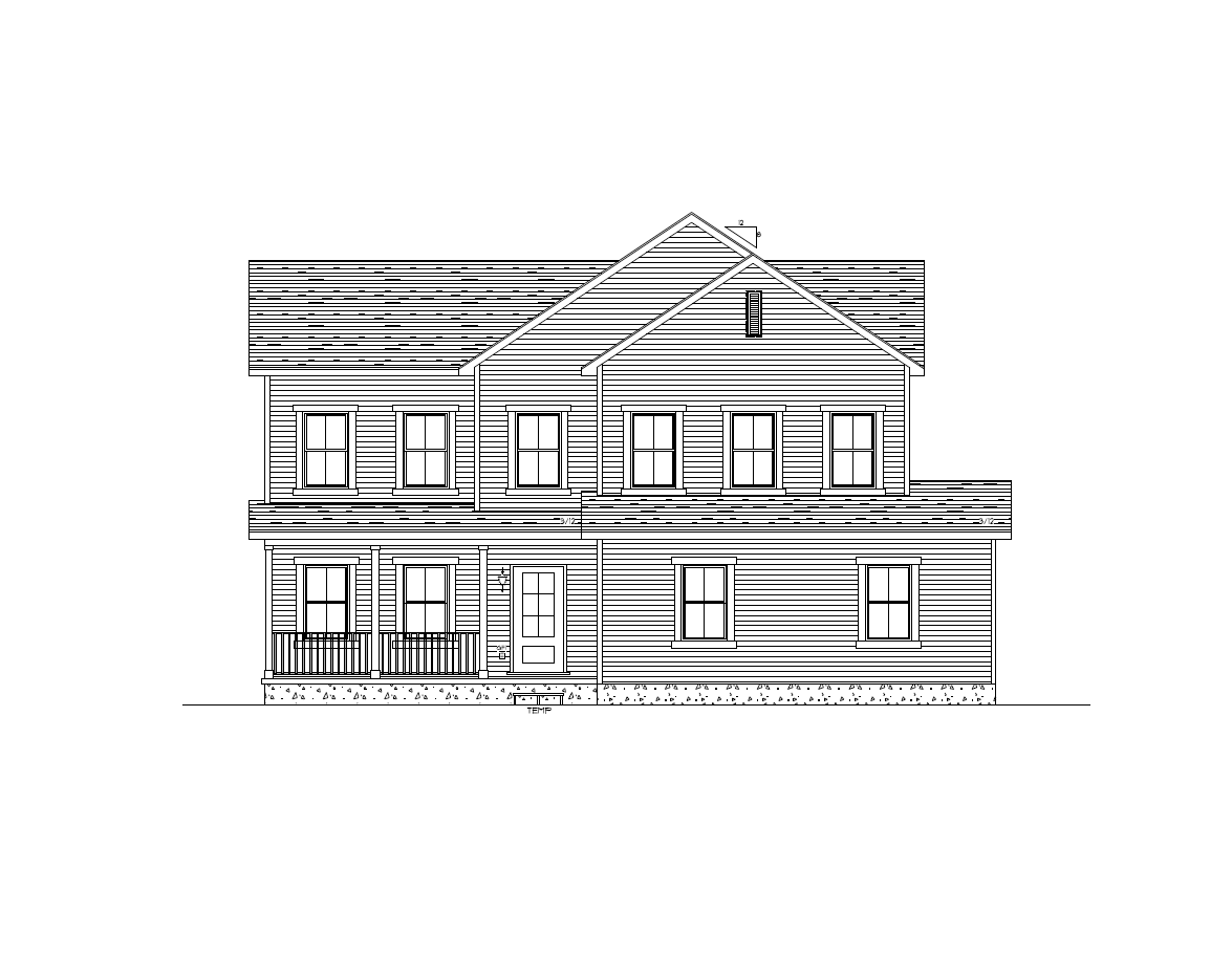 make this front elevation as photorealistic as possible while keeping textures and architectural elements the same as selection add professional landscaping on a lightly wooded scene with good lighting that is in perrysburg ohio use the following colors and materials lap siding to be white in color corner boards to be white in color shingles are to be certainteed dimensional shingles a solid dark shade likely described moire black giving the roof a classic and robust look high definition shadow lines and a rich mixture of surface granules to create a dimensional look that emulates natural shakes entry door to be painted sherwin williams tricorn black 2f2f30 windows to be white in color window trim to be white in color columns to be white in color railing at porch to be white in color fascia soffit gutter and downspouts to be white in color exterior lights to be progress lighting east have exterior lights black in color