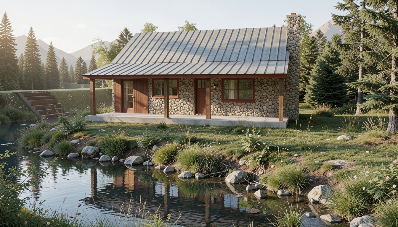 create a photorealistic 3d render of this staircase with a metal stringer and steps made of irving steel grating the design should look modern with very clean and refined lines surround the staircase with garden landscaping for ambiance add indirect lighting integrated into the steps to create a subtle glow the metal stringers should be lacquered in a navy blue finish put the door of the elevator to the left add a floating walll as a rainling change de railing with a close wall