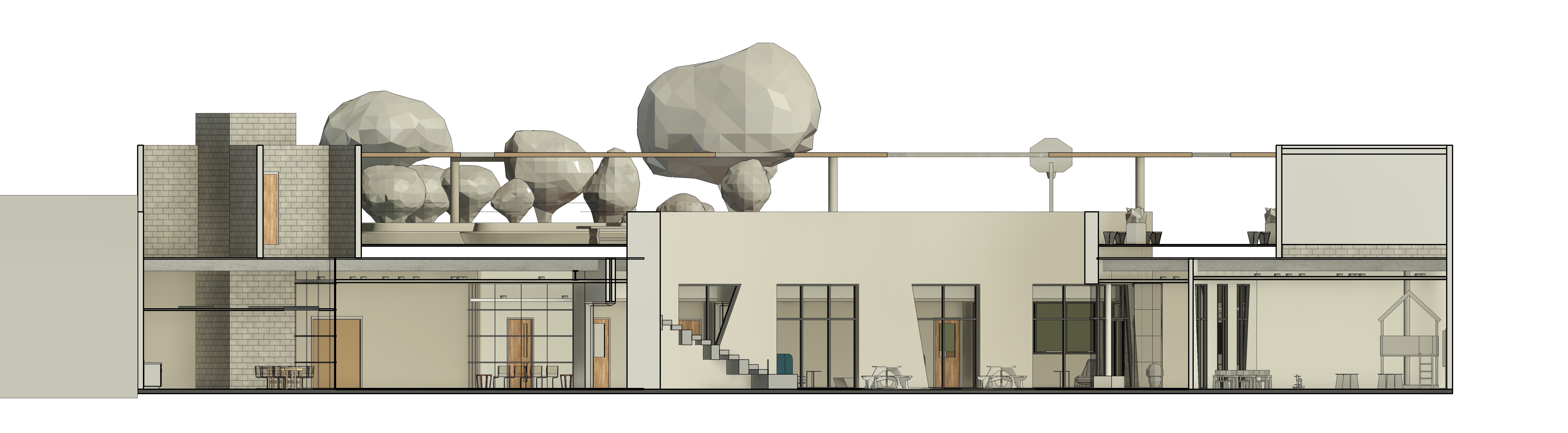 grainy watercolor rendering of building section