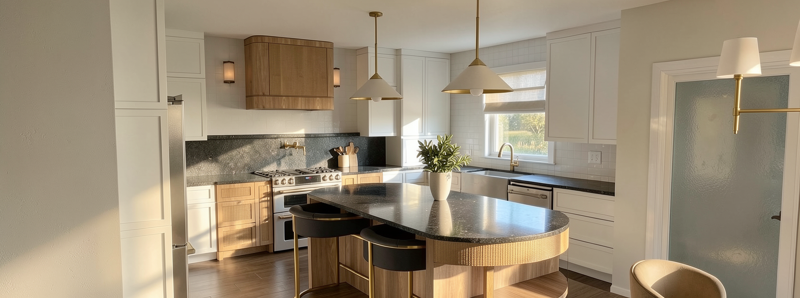 add brass cabinet hardware to all cabinets
