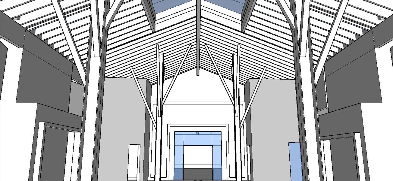 exterior shot make no changes to the model paint all the roof structure haint blue and add interior lighting