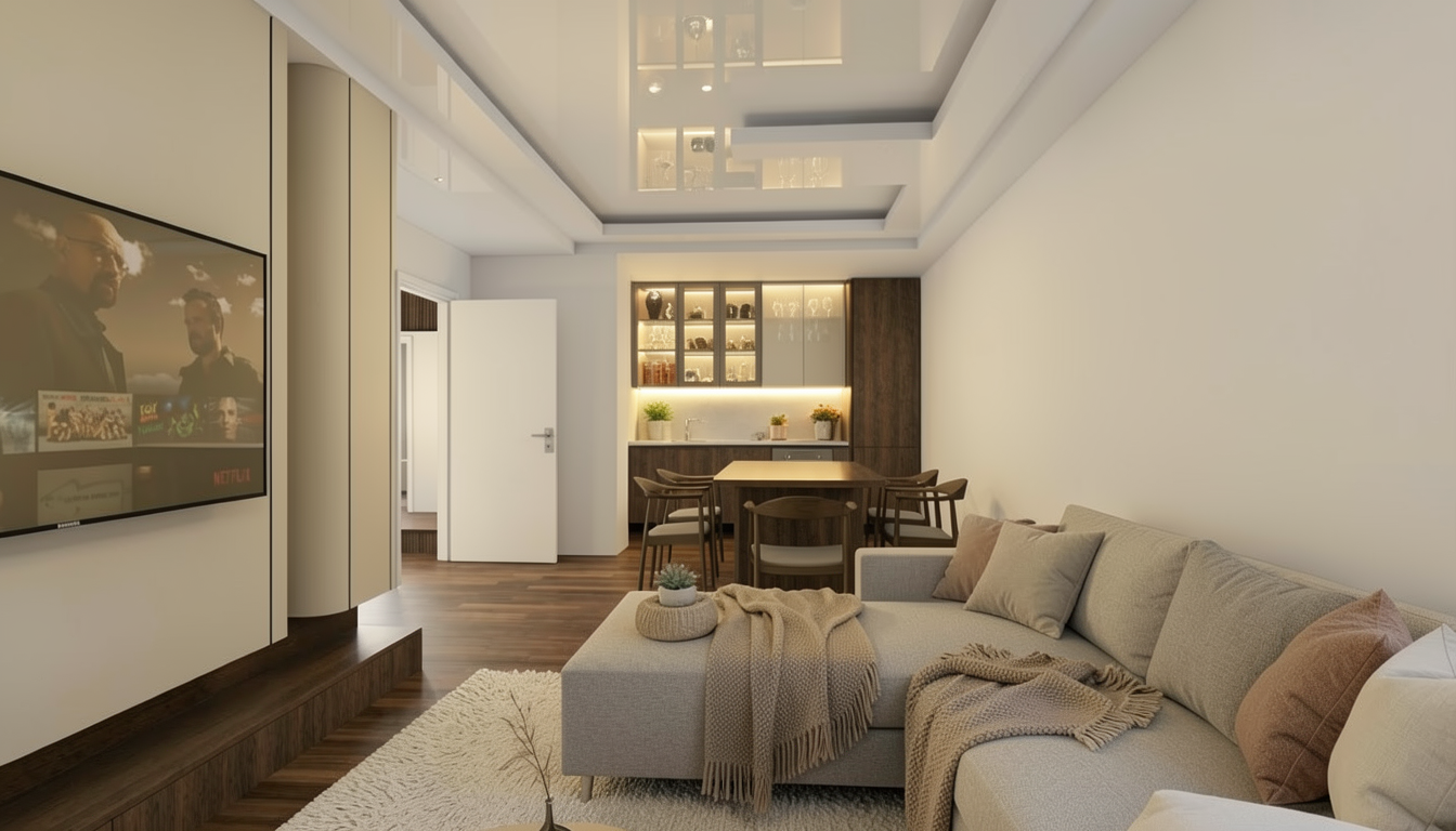 please make this photorealistic the perimeter cabinets are white with woodgraining the island is a charcoal color the countertops are white quartzite with soft black and grey veining the backsplash is the same material as the countertop the wood around the windows is oak please add a backyard and greenery through the windows all hardware is black the sink faucet is black the counter stools are backless with wood legs and a dark grey seat cushion