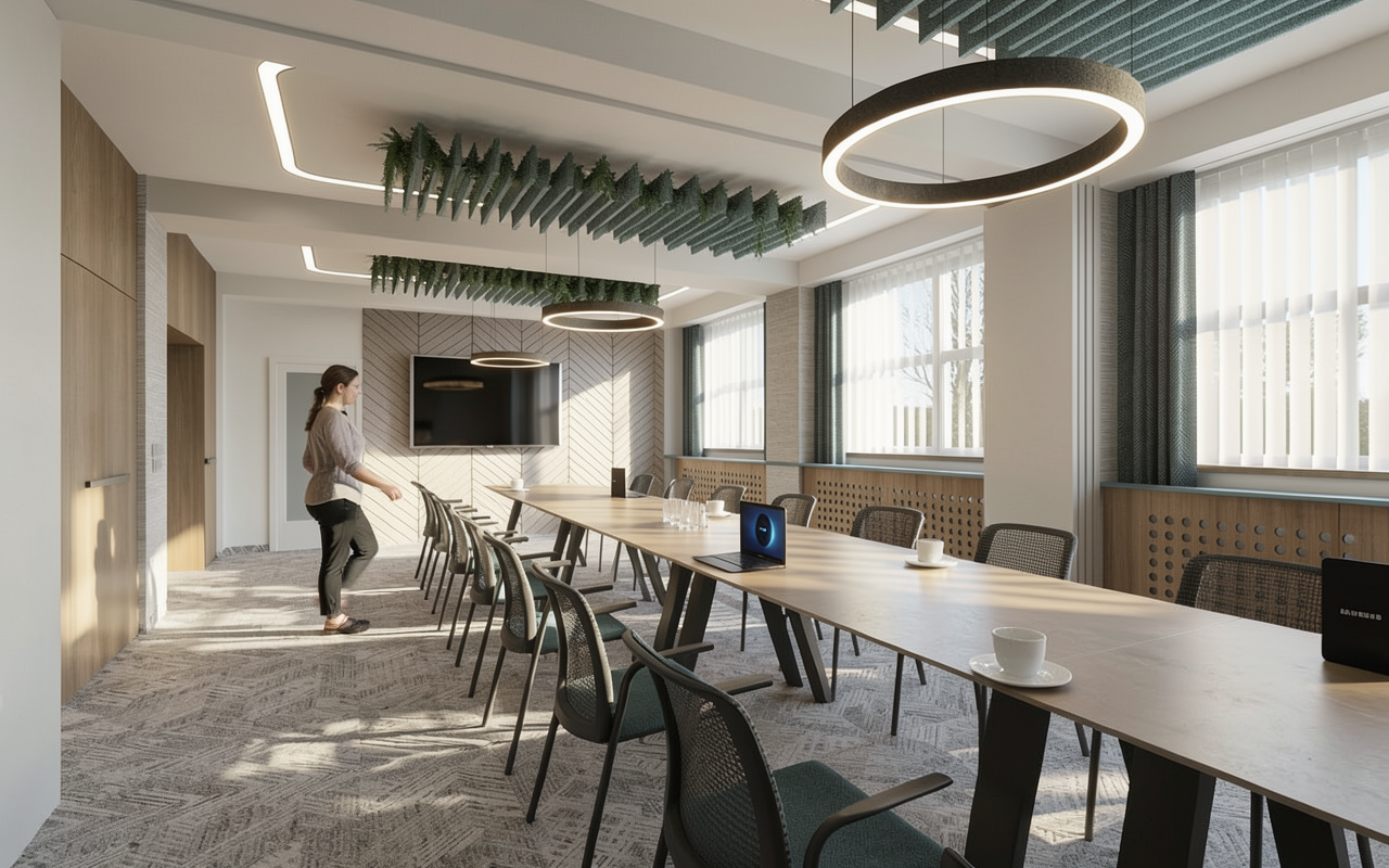 an open space without partitions and with a suspended ceiling space dedicated to a chinese contemporary cosmetics brand designed to offer an elegant and immersive shopping experience the design is calm refined and welcoming rather than formal the materials used are off white tones soft textured textiles brushed brass accents and black for contrast curved furniture soft vertical textures and refined details create a sense of harmony and fluidity warm cinematic interior lighting with soft indirect glow highlights the materials and creates a soothing luxurious atmosphere calm natural color palette modern luxurious asian inspired design soft shadows high end cosmetics presentation photorealistic ultra detailed realistic scale professional interior photography architecture