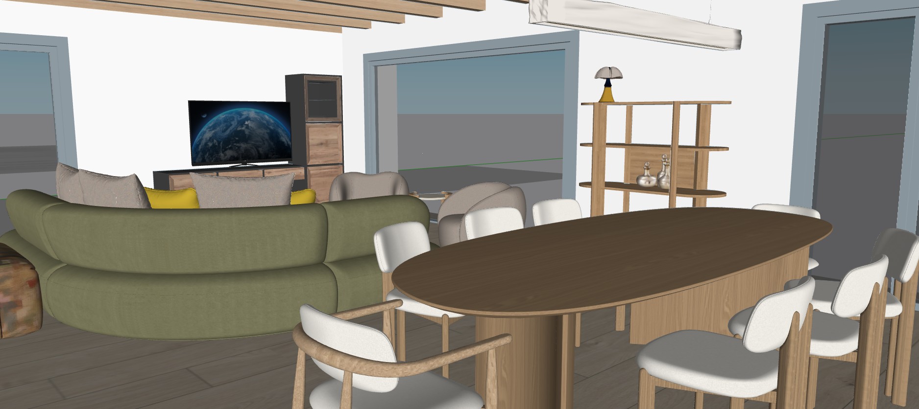 casa con vistas a las monta as nevada de andorra piso tipo parquet en madera natural claro sof con un textil verde militar techo con vigas de madera muebles en gris obscuro l mpara arriba del comedor blanca con iluminaci n c lida puertas en madera de pino natural cocina en melamina gris obscuro marcos de ventanas en gris claro