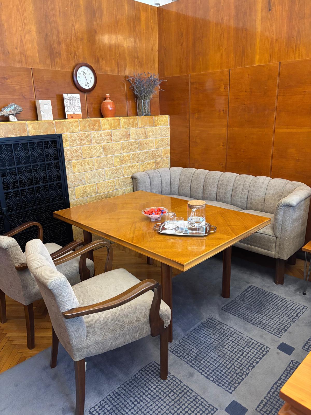 delete the two upholstered armchairs that are next to the table in the picture