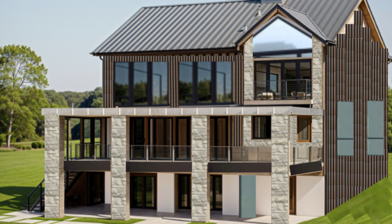 exterior shot keep sun facing facad add stucco to patio make wood cladding smaller architecture