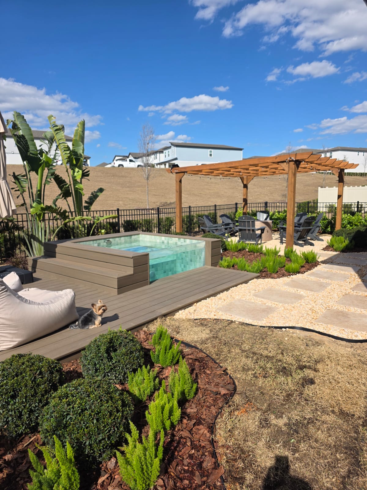 enhance the lawn quality making the grass greener denser and healthier with a well maintained and natural appearance improve the grass texture by adding realistic detail and subtle color variations increase the overall realism of the image with better sharpness lighting balance and natural shadows improve the water so it looks visually balanced with realistic reflections proper transparency and subtle natural movement maintain natural proportions and consistent lighting to achieve a more photorealistic and harmonious scene
