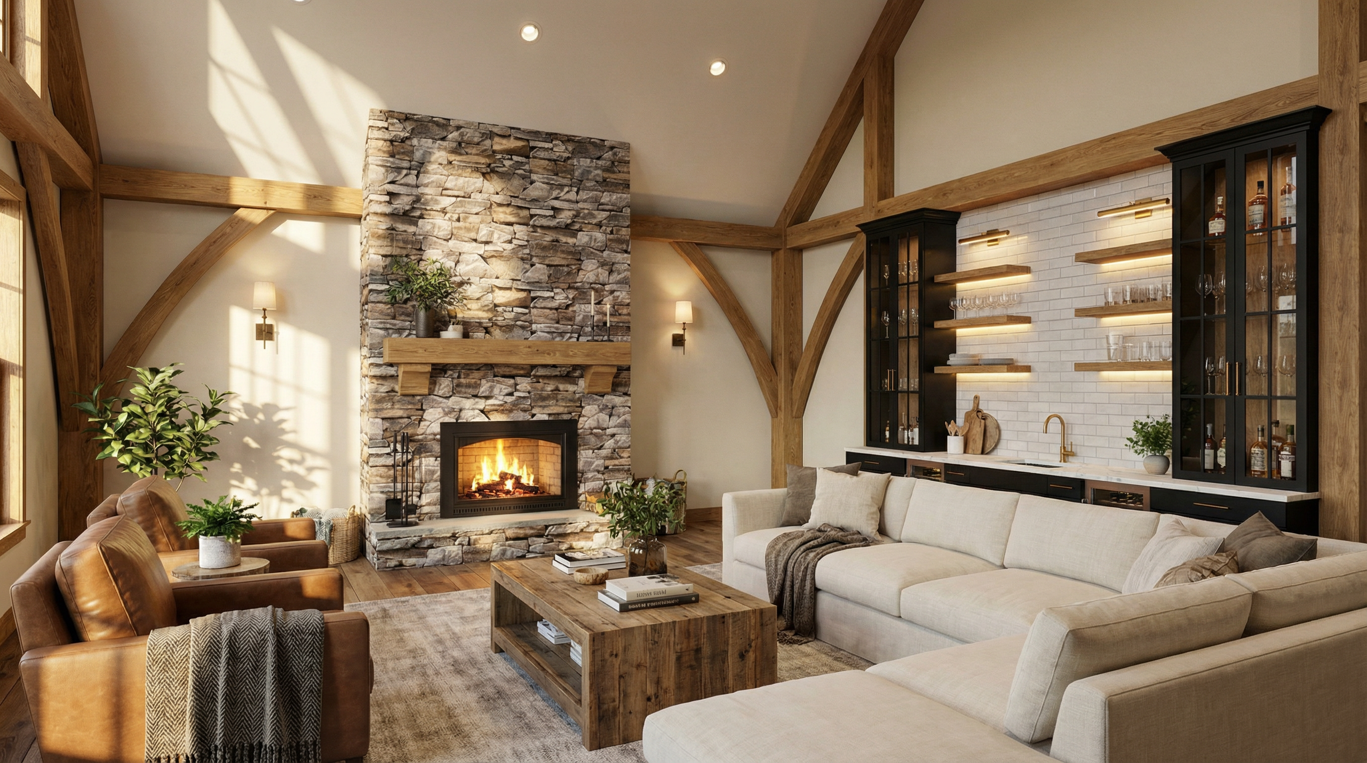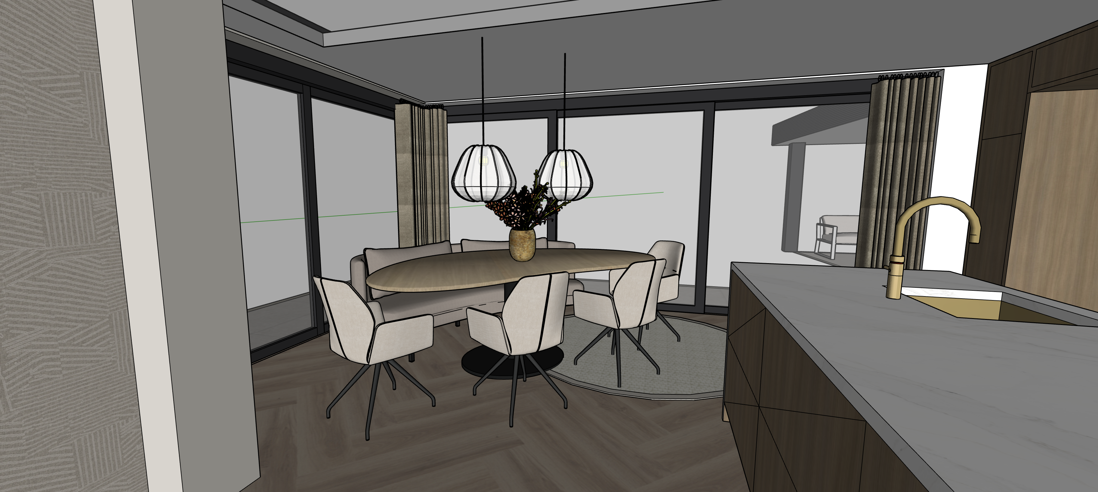 can you make this photorealistic it is light outside but the lights are on inside please keep the materials the same and make the floor light brown