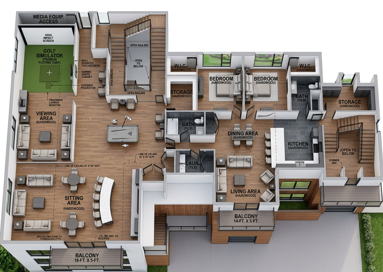 transform this interior architectural space into a warm child centered creativity library while keeping all building geometry structure and proportions exactly unchanged do not alter the architecture roof form columns or openings activate the space through interior elements that enhance the existing pitched roof and structural rhythm introduce a full height built in wooden bookshelf wall along one side following the geometry of the pitched ceiling shelving should feel integrated and custom with a mix of open bookshelves and display niches organize the space into soft flexible learning zones small round tables for group work low seating areas with poufs cushions and soft furniture a few larger communal tables aligned with the structural bays use the column rhythm to subtly divide the space into zones without adding walls each structural bay should feel like a distinct but connected area incorporate warm natural materials such as exposed wood soft matte flooring and muted neutral tones with subtle accents soft blues terracotta sage avoid overly bright or saturated colors add child scaled elements low shelves small furniture and approachable proportions include warm soft lighting suspended pendant lights and subtle linear lighting aligned with the structure maintain strong natural daylight from the skylights as the primary light source keep the space calm minimal and cohesive scandinavian inspired educational design uncluttered but lively through materiality and furniture no people no changes to architecture only interior activation and furnishing