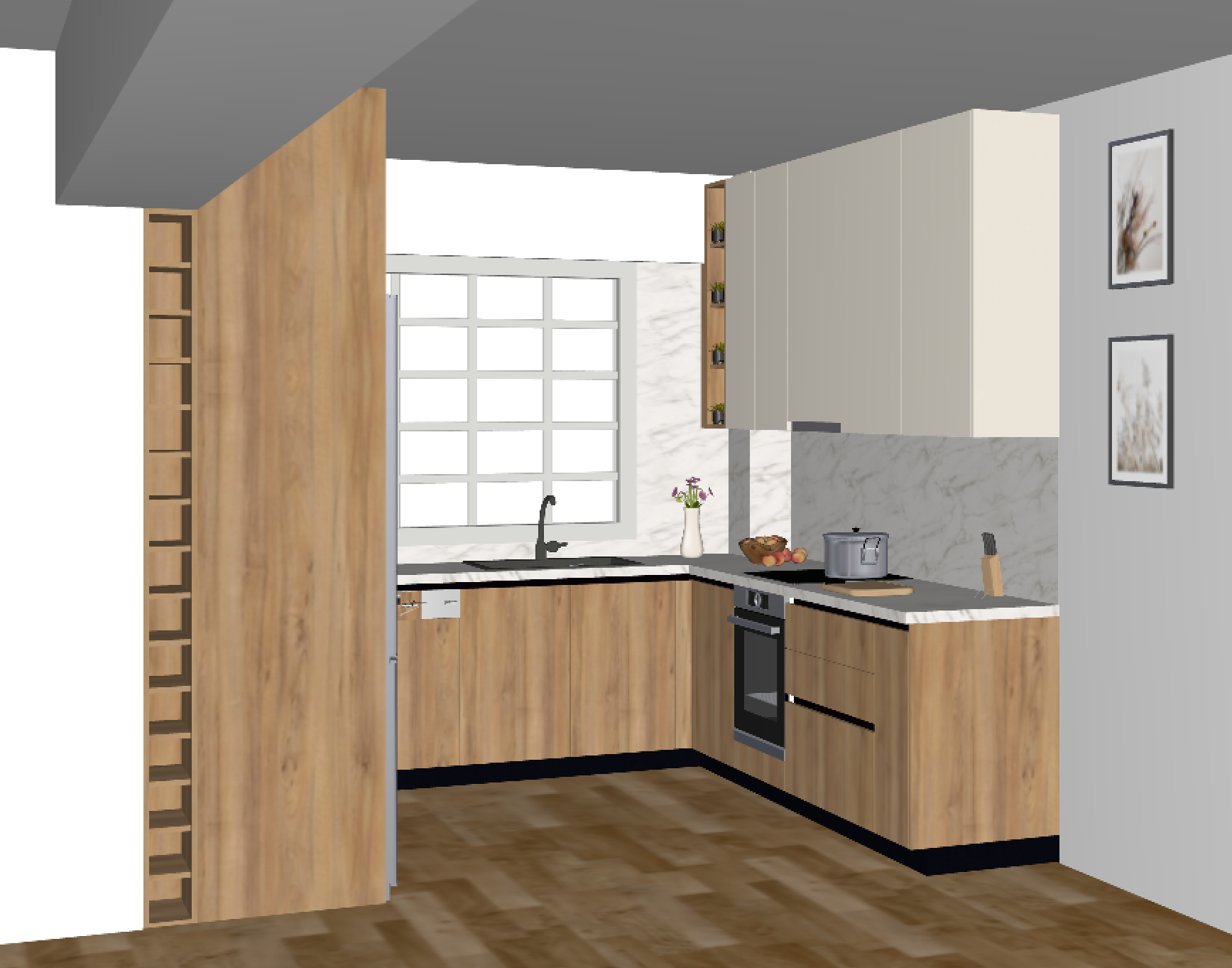 just a 3d render add some lights keep colours as it is add bottles at the shelves