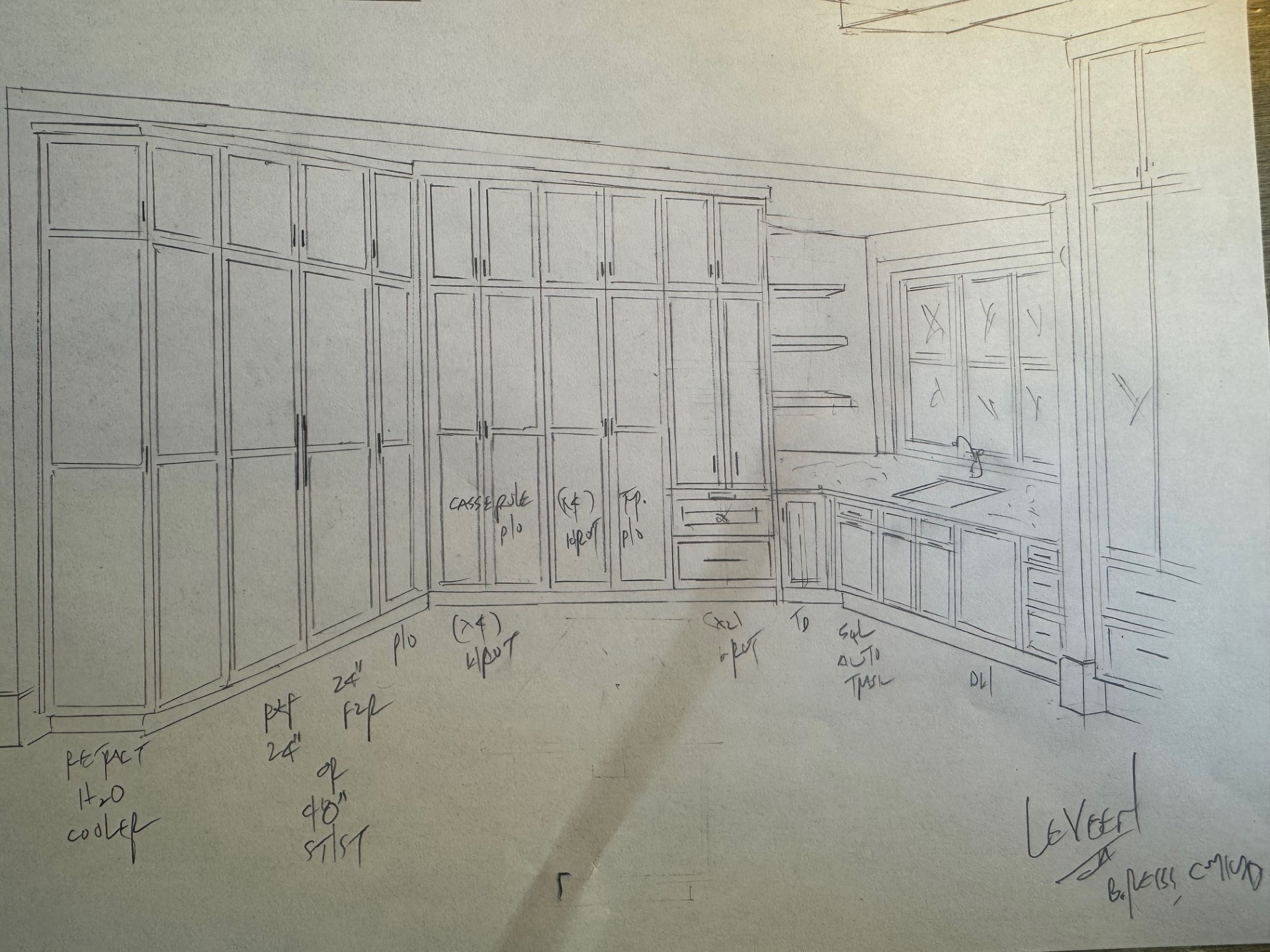 render perpective with off white cabinets and white carrar marble countertops