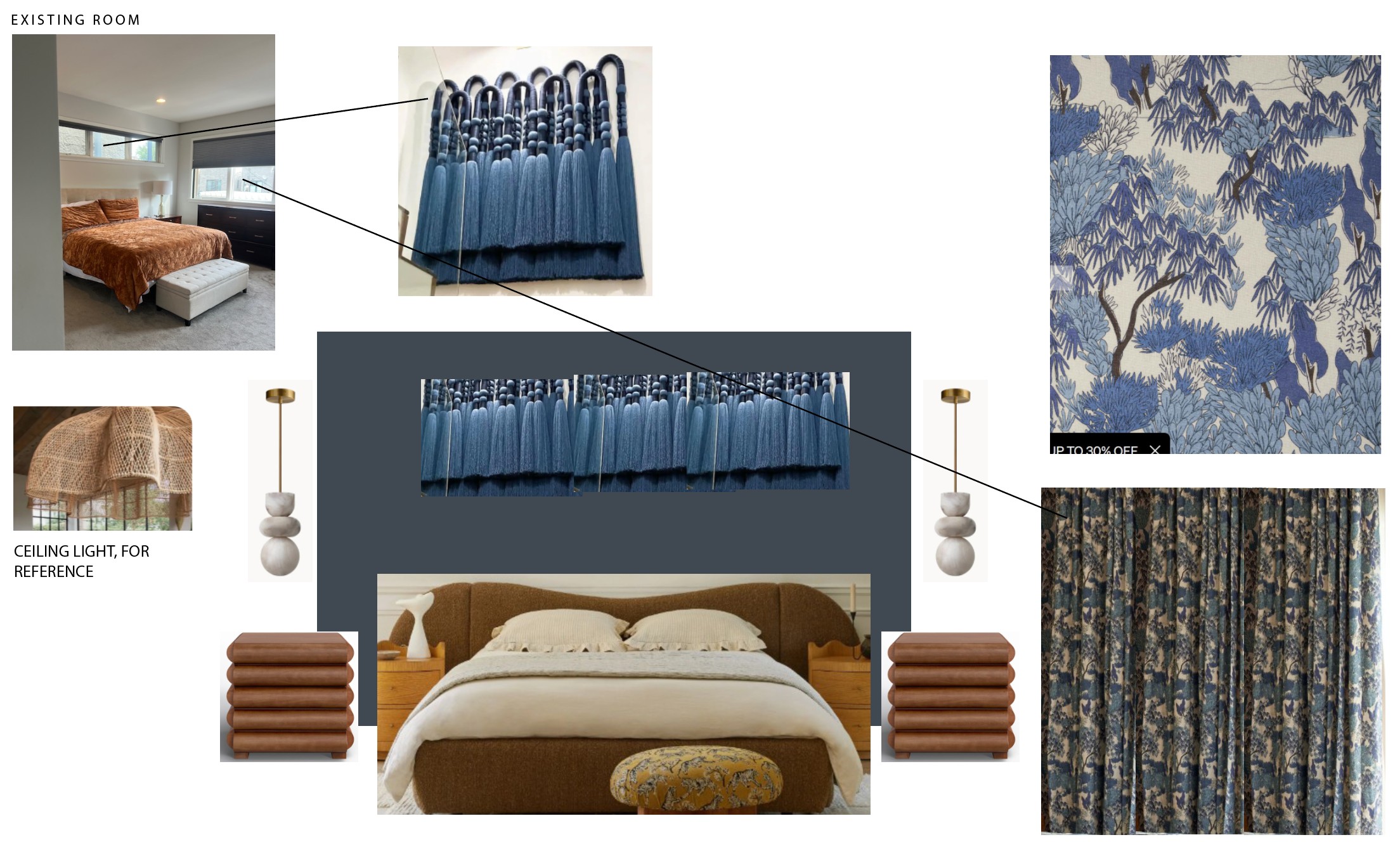 exterior shot use the exact orientation from the photo show the curtains on the right wall use the fringe art above the bed