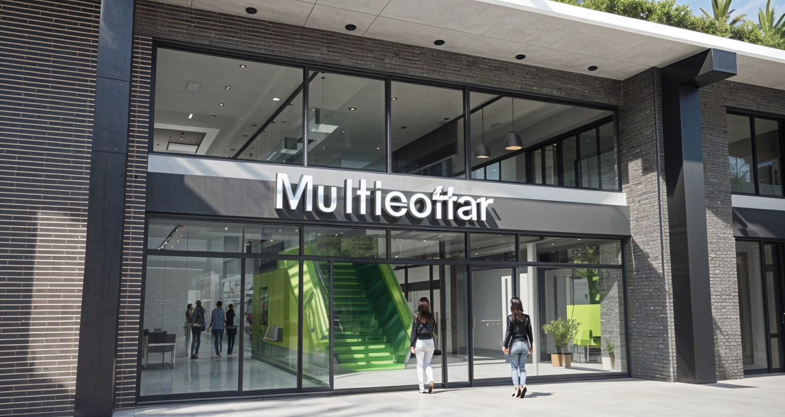 art deco exterior shot render a modern industrial workspace with a sleek design architecture