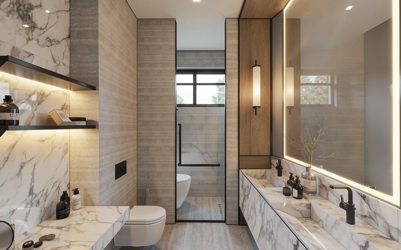 create ultra realistic images without altering any structure shape design or materials do not resize the jpeg add indirect light in every shelves and make gray panel into dark blue