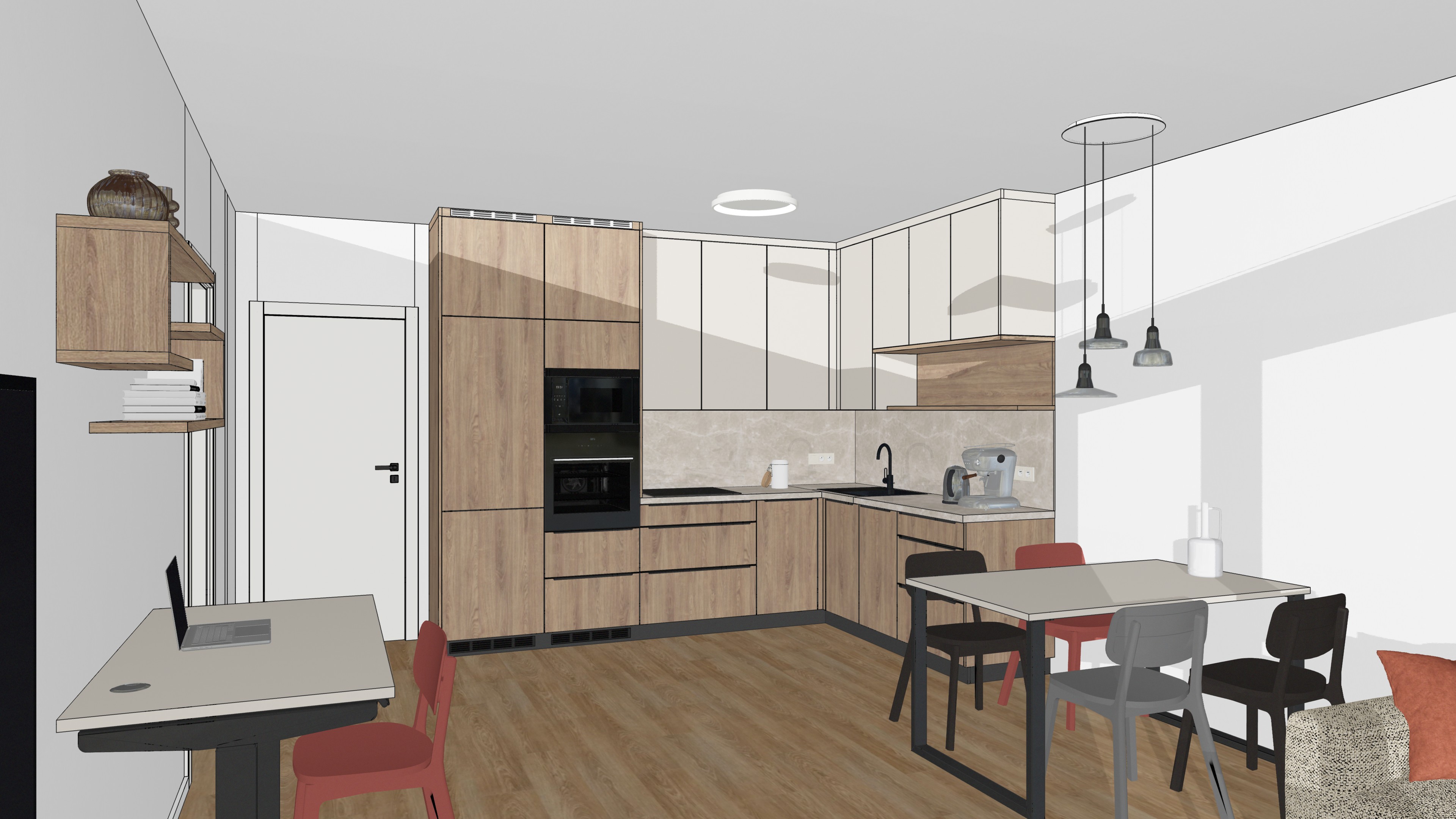 keep the same materials increase the details of the models but do not change the essence of the space improve the lighting conditions